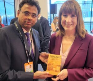 Bhaktivedanta Manor’s Communications and Sankirtan departments worked together to provided 100 complimentary Bhagavata Gitas As It Is to be taken up to the Labour Party’s Annual Conference in Liverpool. Dr Neeraj Patil of Hindus for Labour ran a stall at the city’s Arena and Convention Centre, the venue for the huge event.