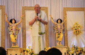 On Saturday 21st March, celebrations opened with readings from the Srila Prabhupada Lilamrta, bringing to life the extraordinary journey of A. C. Bhaktivedanta Swami Prabhupada. A highlight followed: a heartfelt video message from Mukunda Maharaj, who personally witnessed the movement’s humble beginnings.