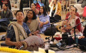 The audience was then treated to a charming drama by Gurukul children, portraying Srila Prabhupada’s historic arrival in the West. Interactive group discussions and a lively quiz added energy and participation to the morning.