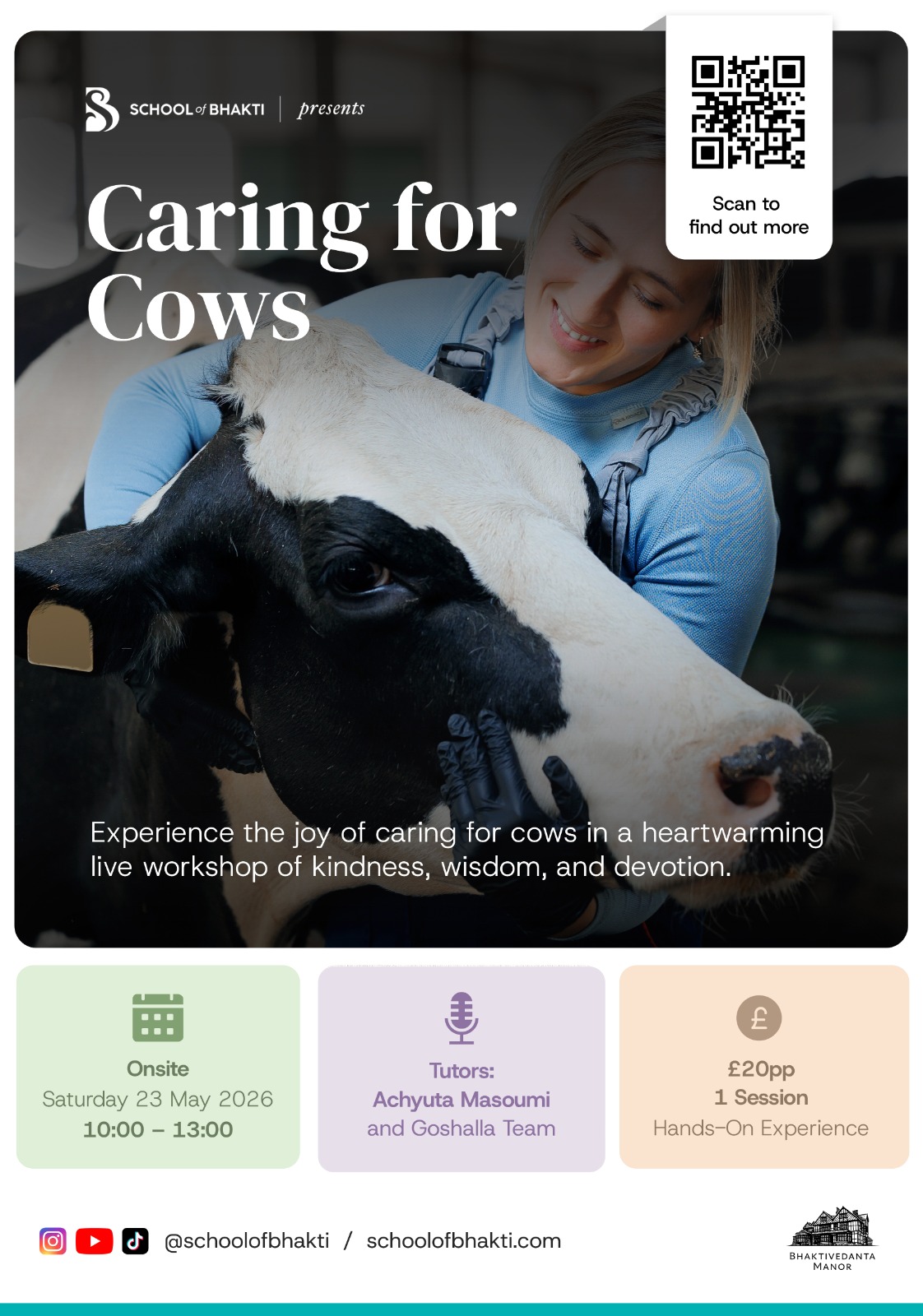 Join us for a heartwarming 3-hour workshop at our cow sanctuary, where you’ll experience the joy of caring for these gentle, majestic beings. In this hands-on session, you’ll have the opportunity to feed, wash, and interact with our friendly cows, learning how to nurture them with kindness and respect. Along the way, you’ll explore the spiritual principles of compassion and care, deeply rooted in ancient wisdom.