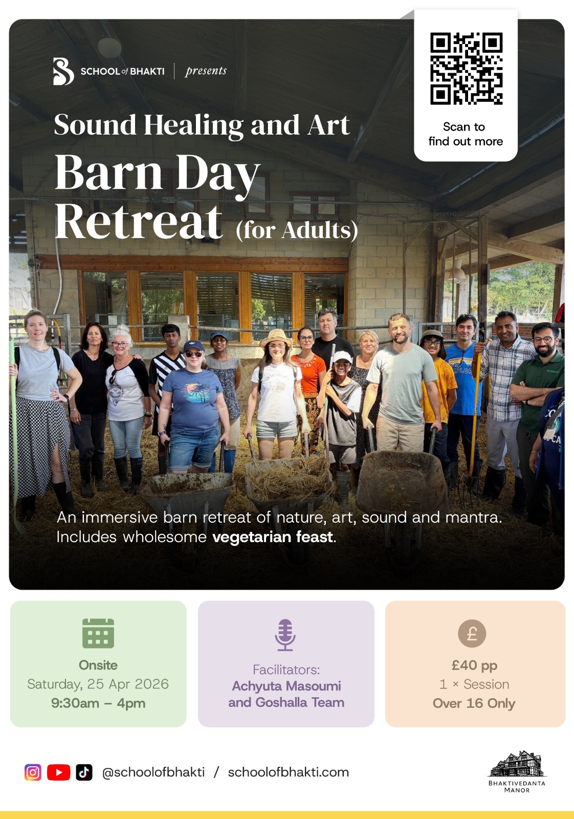 Set within a calm, welcoming environment, the day blends meaningful hands-on farm experiences with art, sound, and mantra to create a deeply nourishing retreat for body and mind.