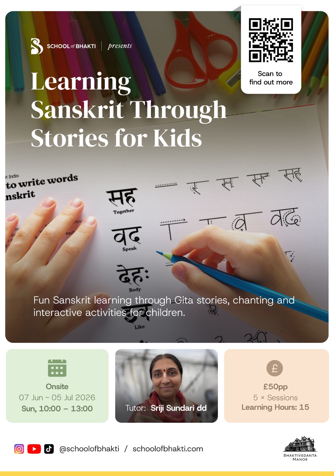 Beyond her academic and spiritual endeavours, Sriji Sundari is a nurturing mother to two children, a devoted wife, and resides in North West London.