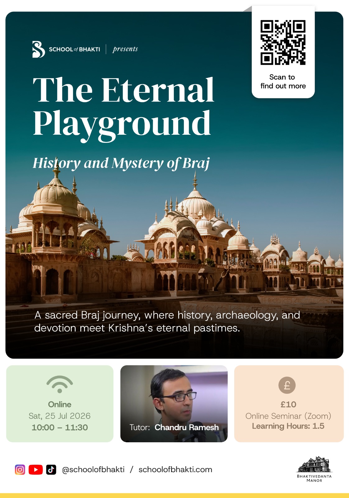Braj is more than a devotional landscape—it is a sacred līlā-bhūmi intertwined with layered historical and cultural significance. This 90-minute Zoom seminar explores the antiquity and living reality of Braj through multiple knowledge systems, bridging devotion, scholarship, and civilizational inquiry.