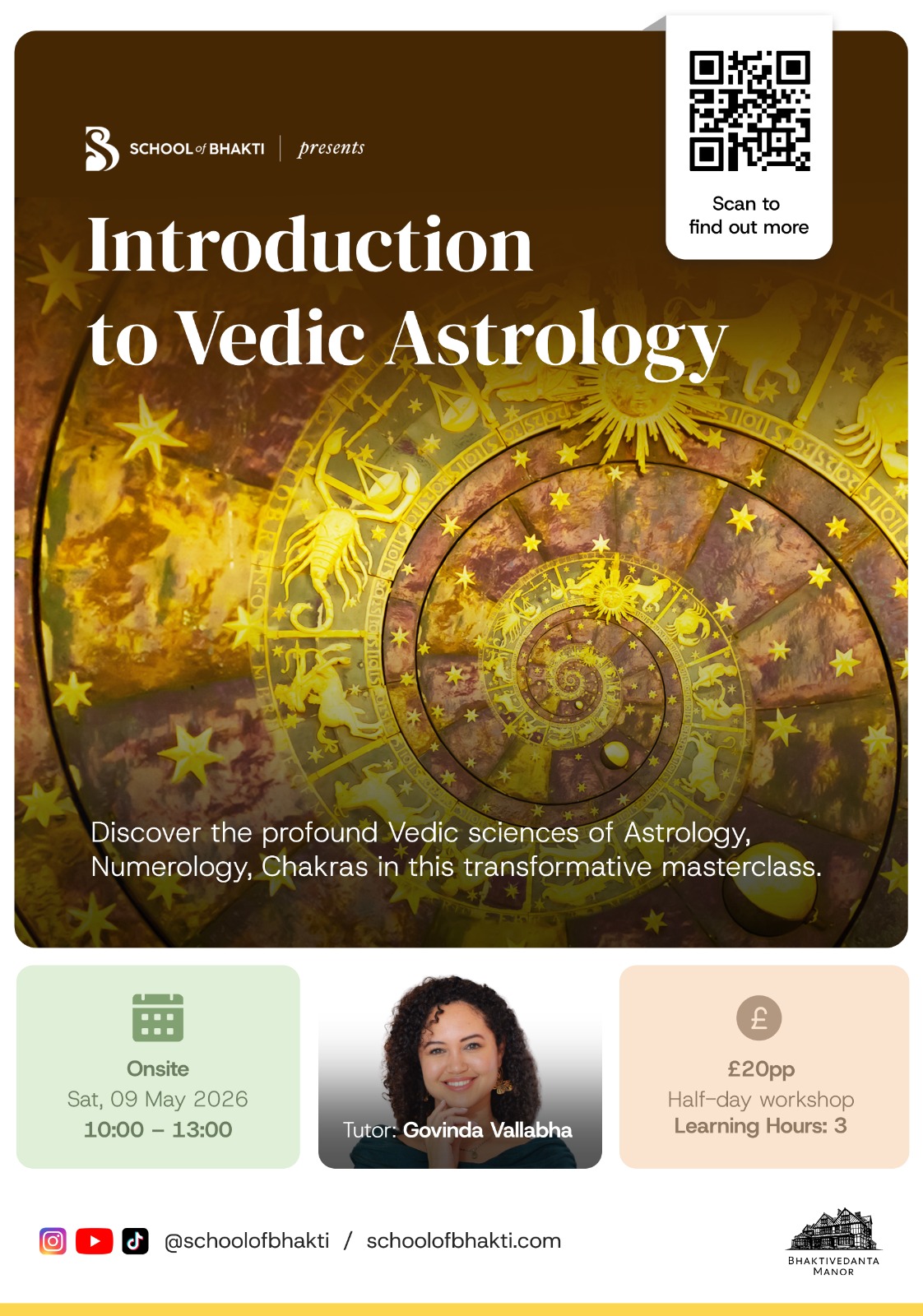 Govinda Goldthorpe is a Vedic astrologer, speaker, and guide on the path of self-discovery. Raised in India within the bhakti tradition, where is better known as Govinda Vallabha dd, she brings over a decade of experience in Vedic astrology. Offering deep insights into karma, purpose, and emotional healing, through her courses and one-to-one consultations, Govinda has inspired diverse audiences. She blends timeless wisdom with a grounded, compassionate presence. Now based in the UK, she continues to share transformative teachings across wellness spaces and spiritual communities.