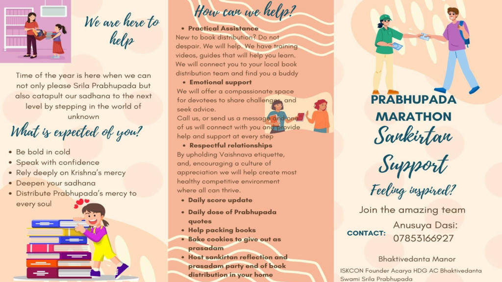 The Book Marathon is an annual event, in which everyone is encouraged to distribute the spiritual knowledge of Srila Prabhupada’s books. Running for a month in the Winter, the event started with humble beginnings in 1972 upon noticing that shops stayed open later during the festive season, making the streets of towns and cities bustling places to engage with people and share the secrets of Vedic wisdom.