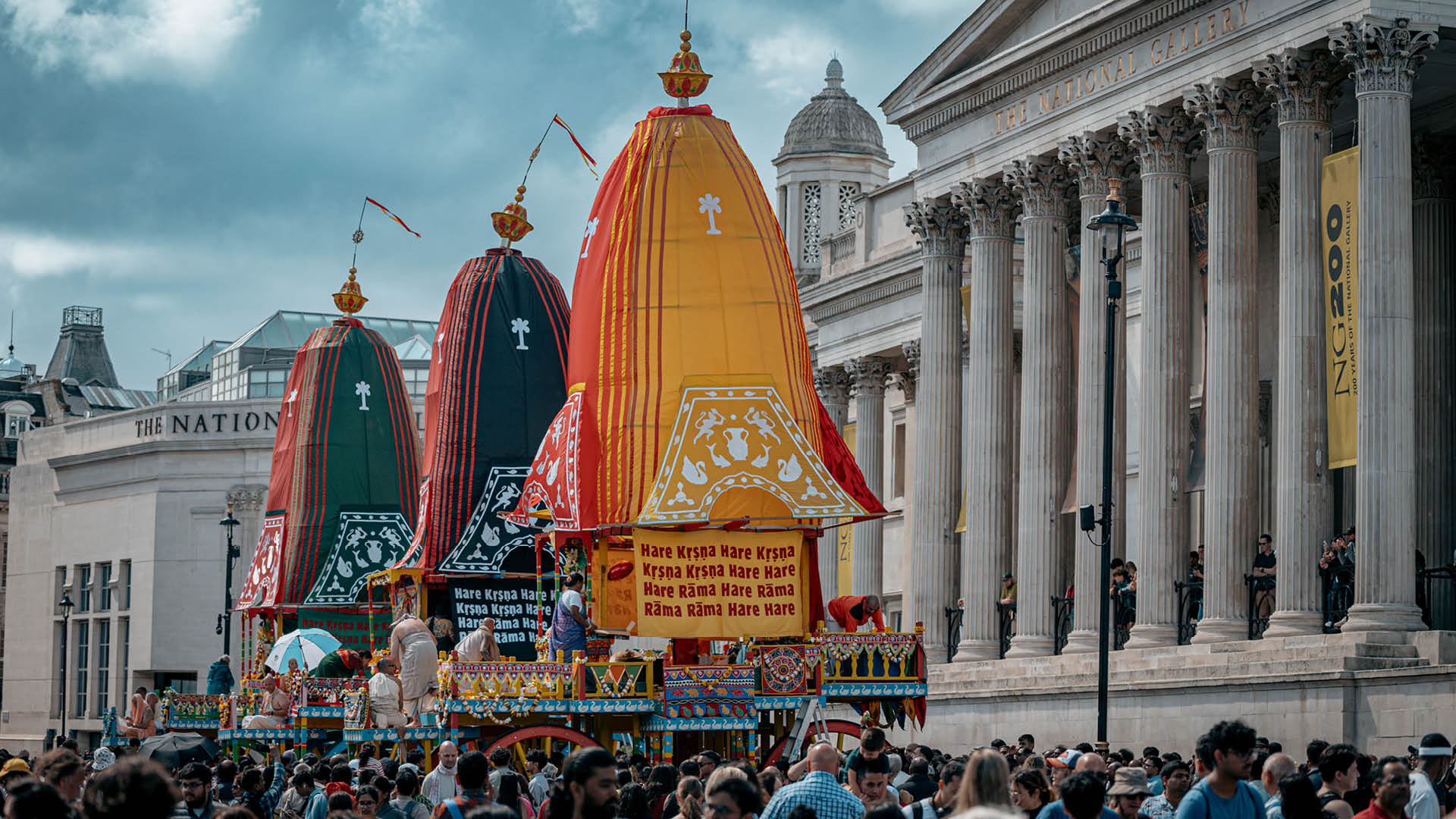 Hyde park Corner Hyde park Corner, London, United KingdomRatha-yatra is the biggest street festival sponsored by ISKCON – and ends with a delicious, sanctified vegetarian feast.