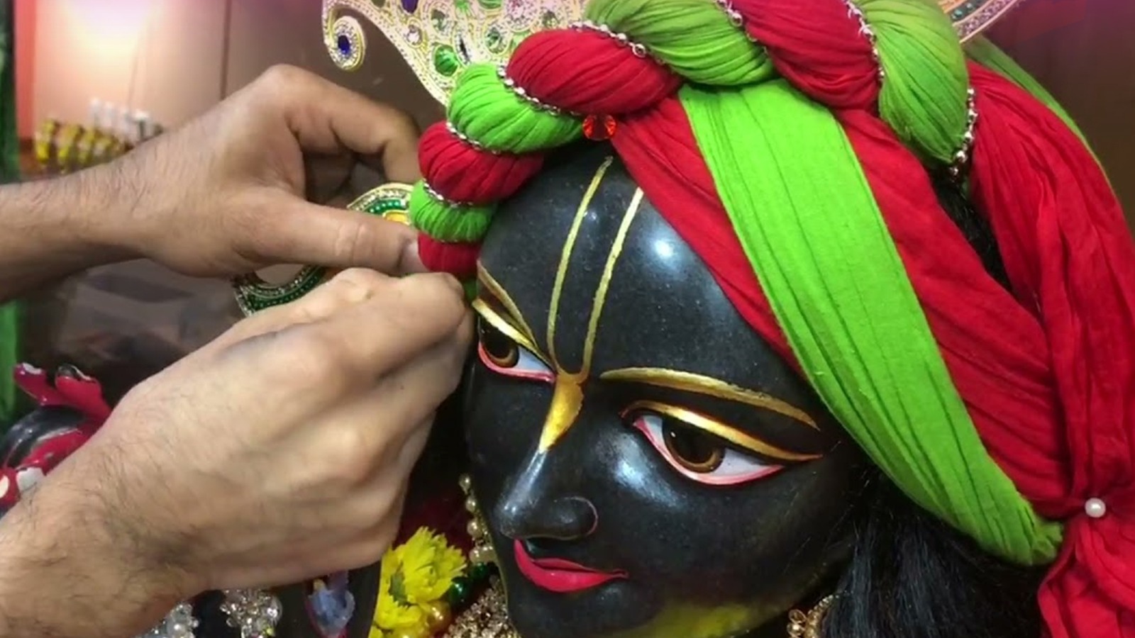 By the blessings of the devotees and his spiritual master, Visnu Murti Das had the opportunity to study the art and science of deity worship at the Mayapur Academy and was the highest scoring student in his year, achieving the special distinction of being the only student to score 100% in dressing Seva. With the blessings of Mayapur’s head pujari, HG Jananivasa Prabhu, for 6 months Visnu Murti Das was given the service of dressing the right side Sakhi’s on Sri Sri Radha Madhava’s altar each morning and evening and he was also engaged in painting Srimati Radha Rani’s and Sri Madhava’s gopi dots daily. During his time in Mayapur he also had the good fortune of serving on the altars of Lord Nrsimha-Dev as well as Panca-Tattva.